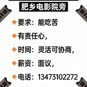 招聘 肥乡电影院附近小吃店 招牌店员4名 要求:年龄20-45岁之间,有责任心,踏实稳定吃苦耐劳 工资面议 地址:肥乡电影院东行50米